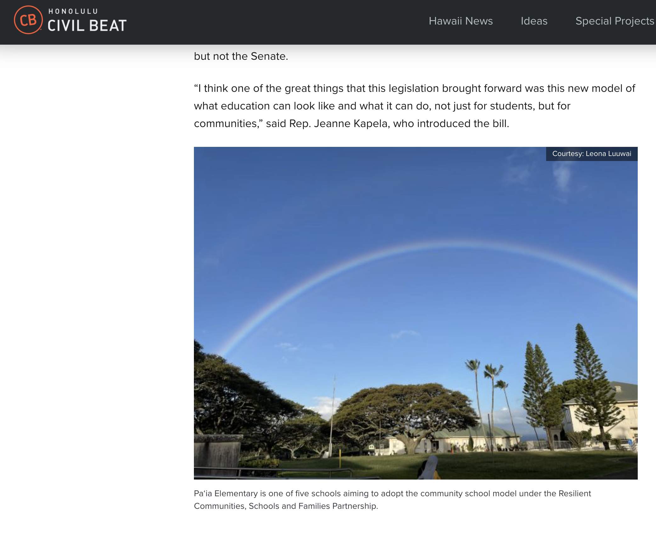 The Community Schools Model has always been at the core of the RCSF partnership. Mahalo to Honolulu Civil Beat for highlighting the work of RCSF and how Community Schools are making a difference for kids. RCSF partner school Pa‘ia Elementary was one of the featured schools in the article, along with quotes from RCSF partners with Ceeds of Peace and HawaiiKidsCAN.