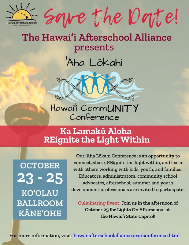 Be sure to join the Hawai‘i Afterschool Alliance and other RCSF partners this fall for the ʻAha Lōkahi CommUNITY Conference. Registration opens in July, so stay tuned.