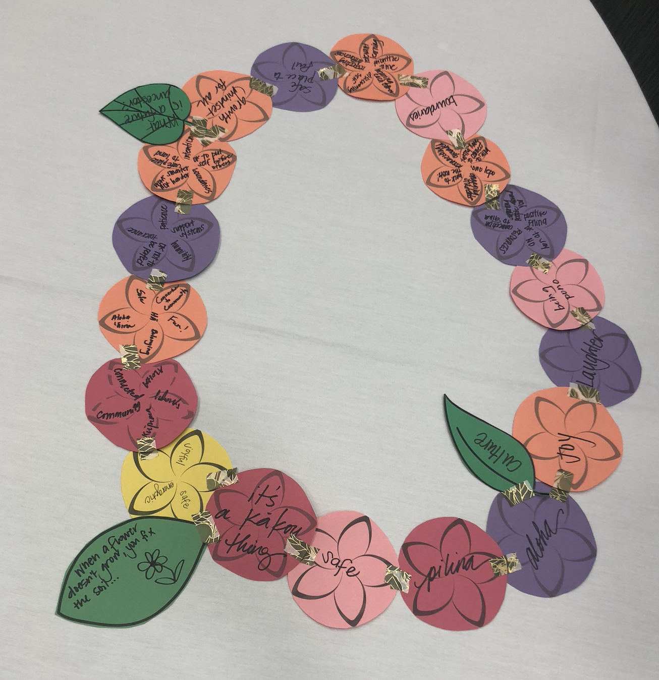 Dawn Rego-Yee, Trish Papalimu, and Tia Hartsock from our team led a workshop for educators at the 2022 Schools of the Future Conference, which is one of the largest annual education convenings in Hawaii. The team introduced the core concepts of the Community Schools model, led a community asset mapping exercise grounded in the concept of the ahupua’a, provided strategies to mitigate the impact of burnout and compassion fatigue, and helped everyone connect through metaphorical and literal lei-making exercises.
