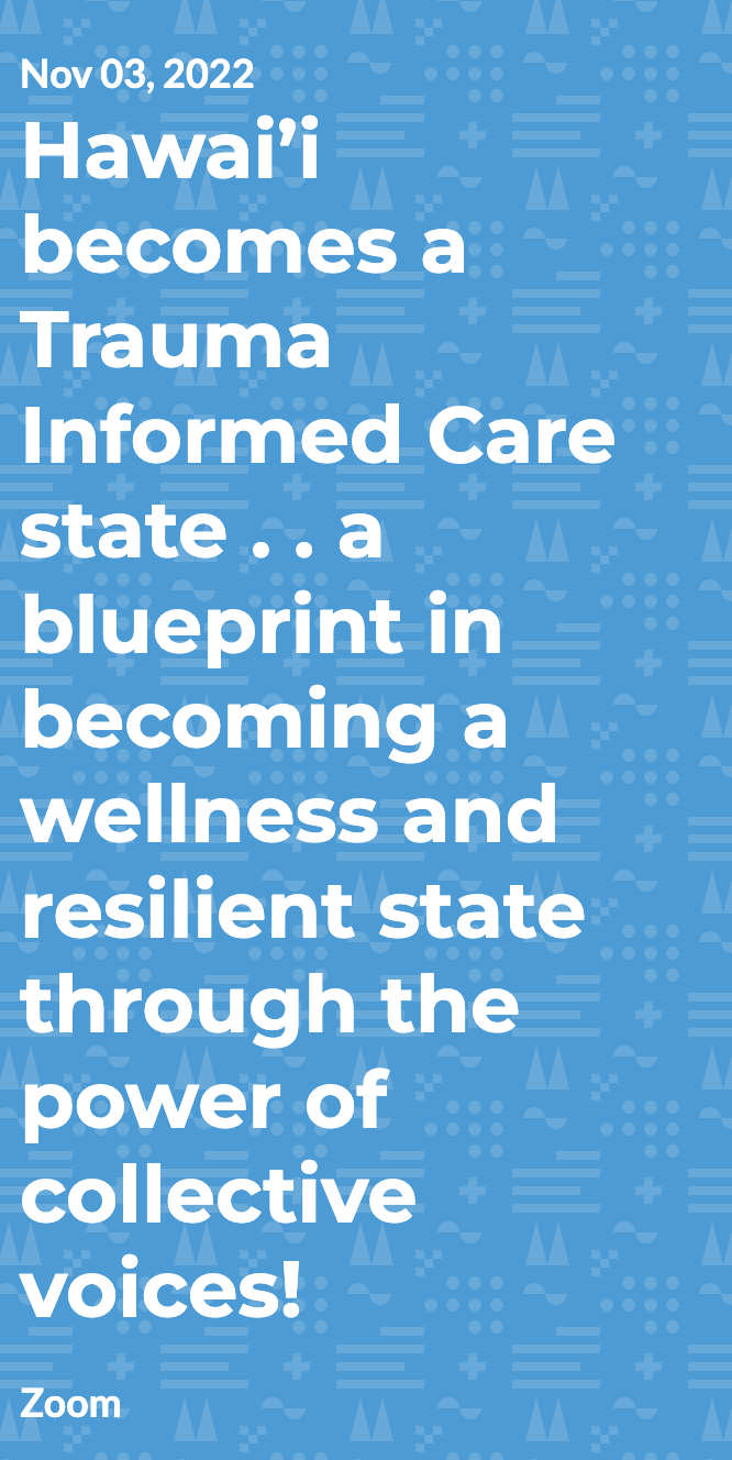 Upcoming event – November 3: Hawai’i becomes a Trauma Informed Care state . . a blueprint in becoming a wellness and resilient state through the power of collective voices
